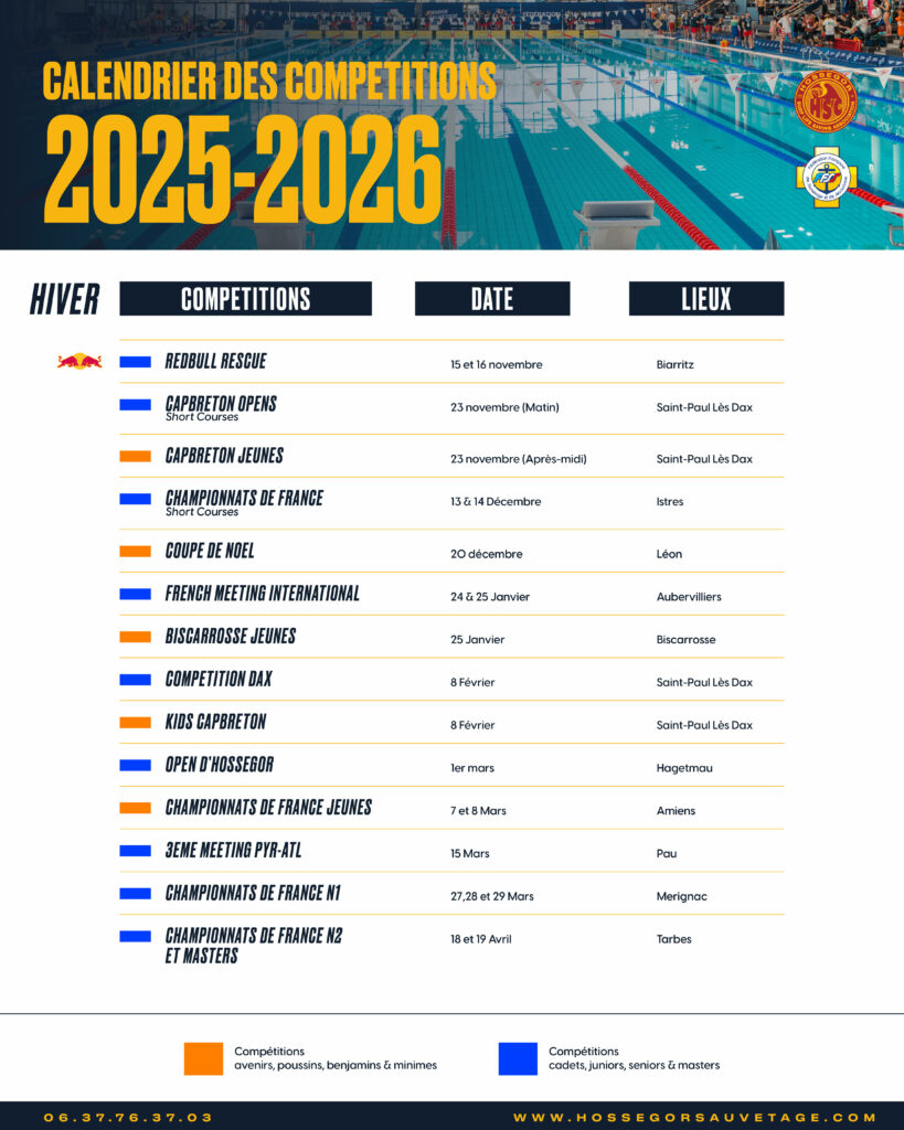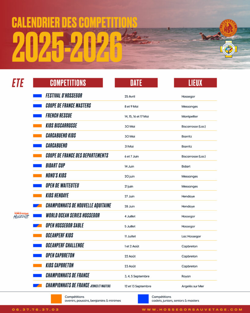 L’inscription aux competitions se fera sur les groupes sportifs sur Whatsapp. Si vous avez votre licence et n’avez pas encore été intégré dans le groupe qui vous concerne n’hésitez pas à nous contacter sur president@hossegorsauvetage.com