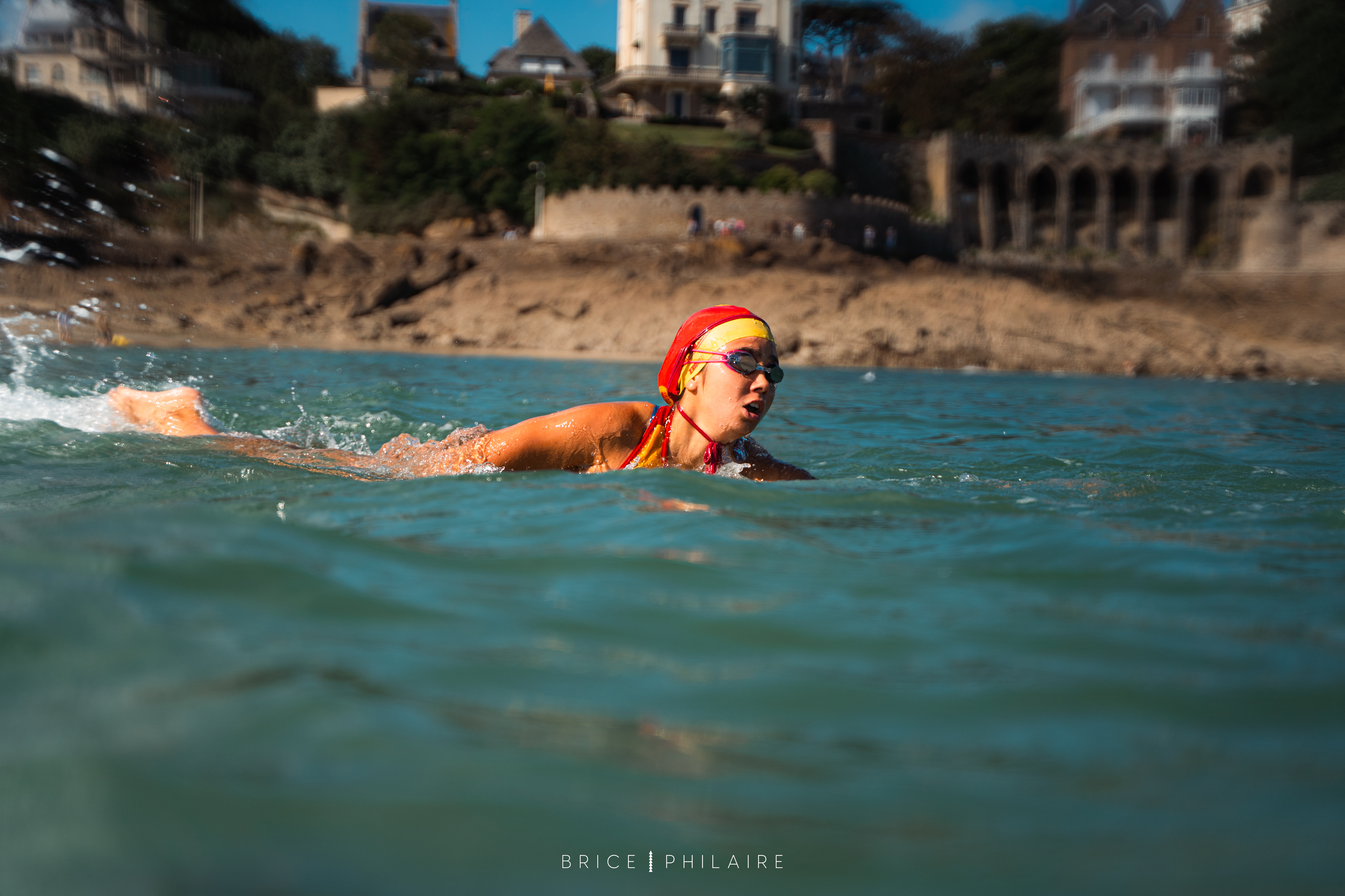 Les sauveteurs partent de la plage et doivent nager, contourner les bouées correspondant à l’épreuve et revenir sur la plage pour franchir la ligne d’arrivée.